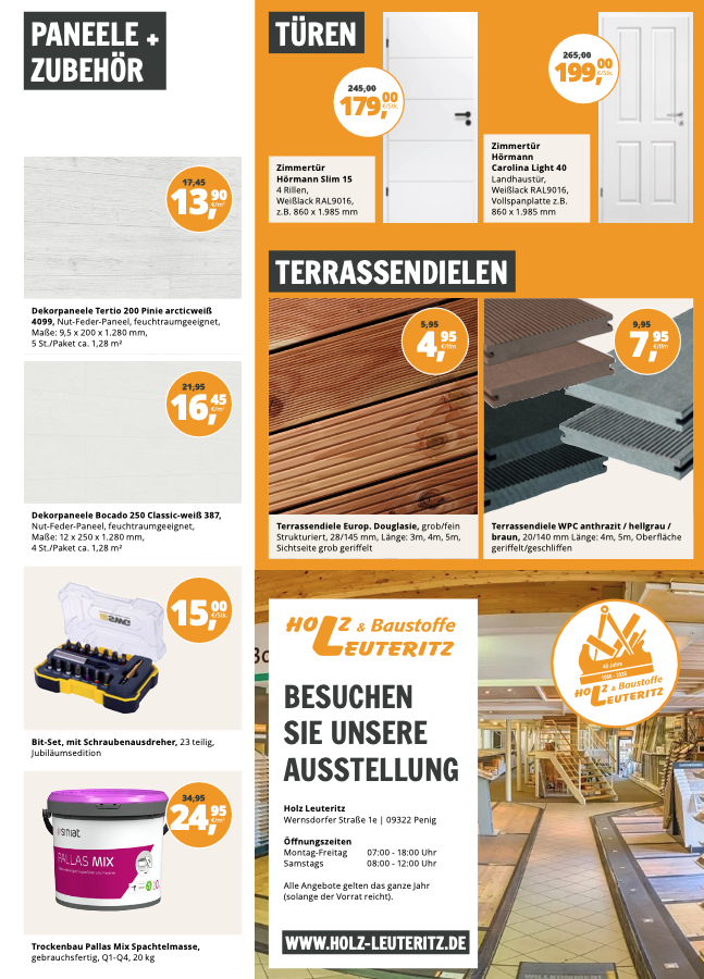 Baustoffen, Holz, Küchen, Werkzeug und Bodenbeläge.